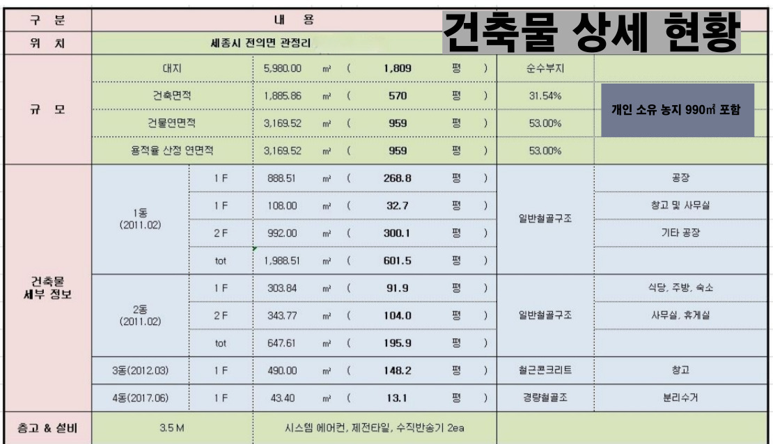 세종시 전의면 1,000평 전자공장 40억원 매매 물건